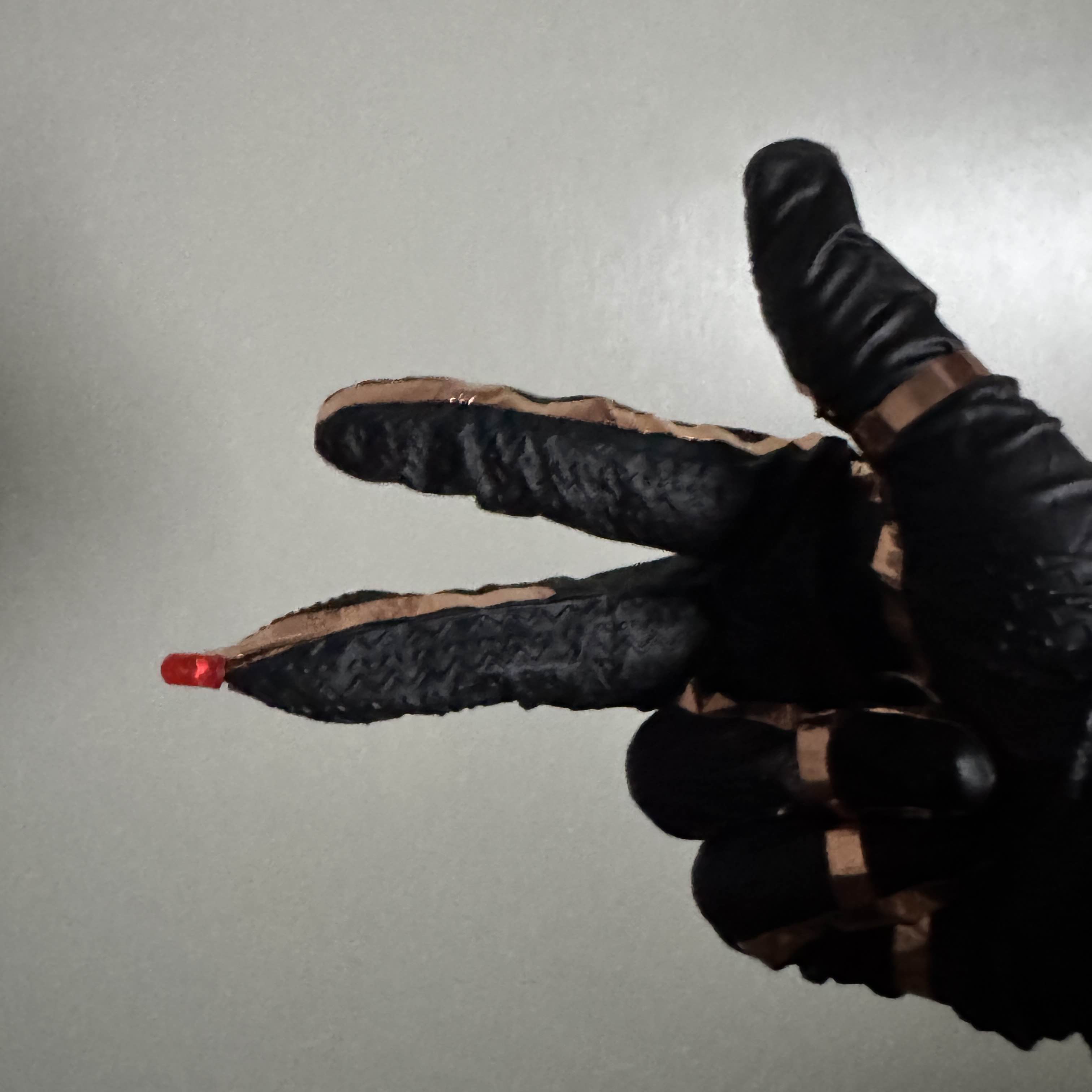 For the wearable object, I made a light-up finger gun glove. The circuit is only completed when you actually make the finger gun with your hand.